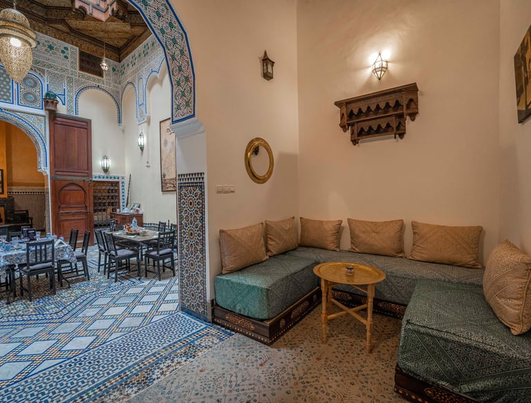 Nestled in the heart of Fez's medina, Riad Dar-Na near to Mosquee Rcif offers a peaceful retreat surrounded by centuries of Moroccan history.